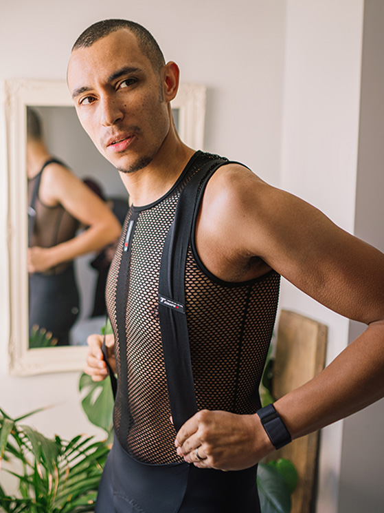 Il fondo gamba si vale degli Ultralight Leg Grippers, che hanno fasce elastiche compressive e gommini in silicone per una migliore presa sulla gamba. Ugualmente nell’ottica di rendere il capo stabile durante la pedalata, vale la pena soffermare l’attenzione su X-Frame, la sospensione ereditata dalla linea Equipe RS, che limita l’abbassamento nella parte inferiore della schiena, stabilizzando il fondello e il pannello principale del corpo durante le pedalate più intense.