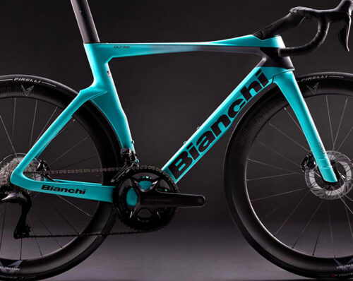 e-Oltre viene proposta in un’unica colorazione: il classico Celeste arricchito con inserti metallizzati e logo Bianchi sul tubo obliquo in nero. Come detto sono disponibili tre versioni, tutte equipaggiate con ruote in carbonio da 50mm Velomann Plutonium.