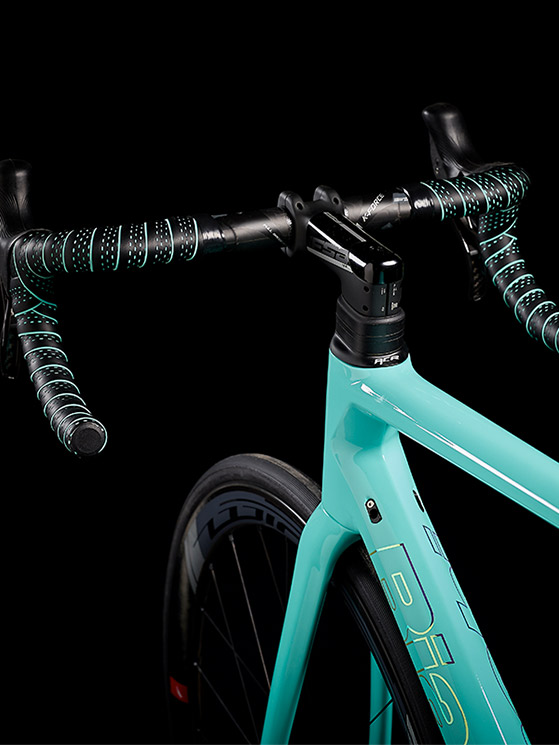 A denotare la grande innovazione che contraddistingue la nuova Specialissima troviamo anche una serie di colori molto esclusivi. Oltre al classico celeste Bianchi, è disponibile anche una versione Ultra Light Black, creata appositamente per i corridori del World Tour, che abbassa il peso di ulteriori 80 grammi. Bianchi ha introdotto anche un terzo colore molto elegante, il Greenish Blue, un verde -blu che risalta lo stile italiano.