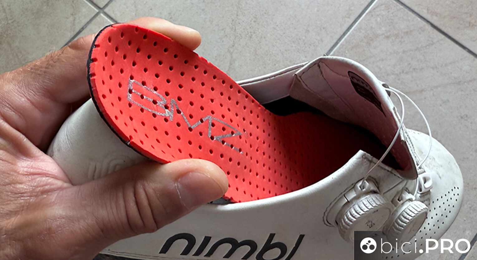 Rispetto alle altre, la versione Sport di BMZ si distingue da subito per il rivestimento rosso, completamente forato dall’alto vero il basso. Anche la densità e la struttura (bella tosta) sono differenti. C’è un doppio strato di EVA con rinforzo posteriore e, pur essendo indicate per un pubblico di agonisti, si rivolgono a più discipline. Si rivolgono a quella tipologia di atleti che non vogliono un plantare estremo (ad esempio full carbon), ma pretendono al tempo stesso un supporto costante lungo tutta la pianta del piede.