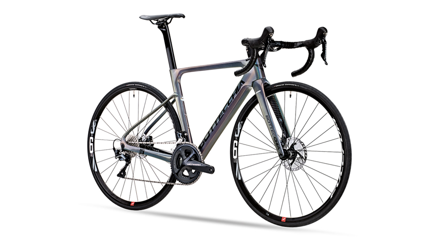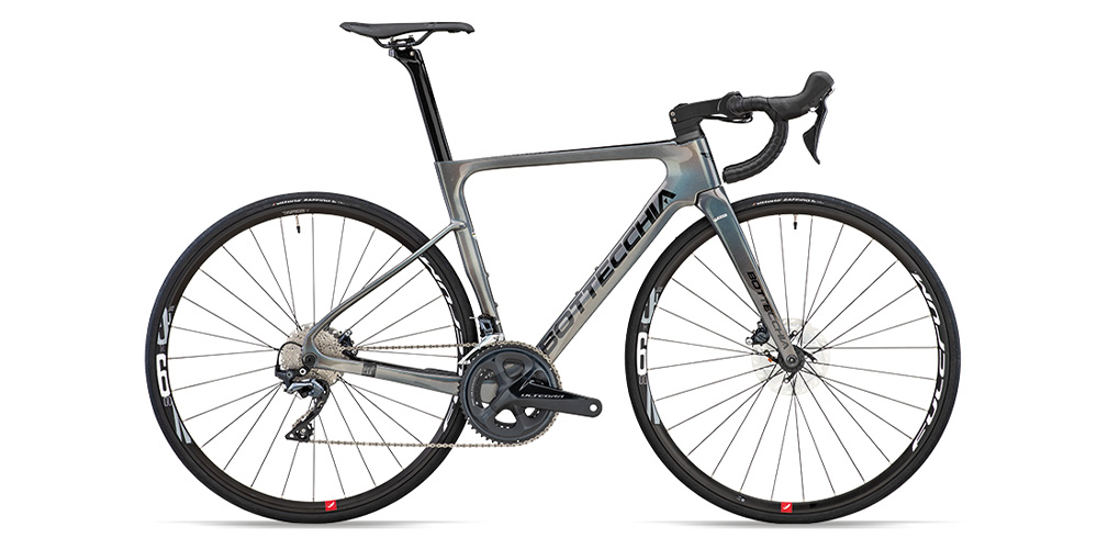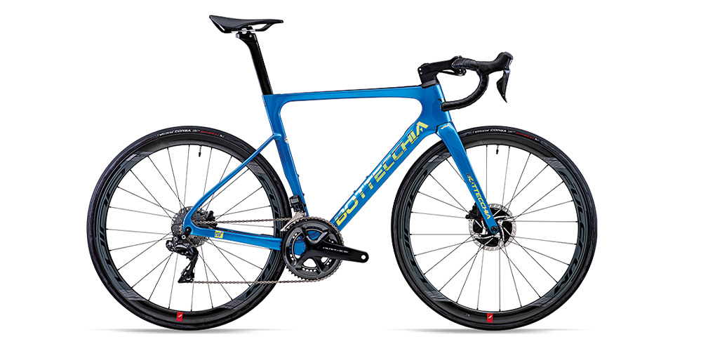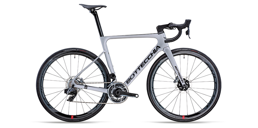 Bottecchia Aerospace: la “superleggera” (e super veloce…) bicicletta italiana, lo stesso modello in dotazione anche quest’anno ai professionisti del team Androni Giocattoli Sidermec, è oggi ordinabile anche assemblata con il nuovo gruppo elettronico Sram Rival eTap AXS. Questa trasmissione ha rappresentato quest’anno una vera e propria novità nel settore. La Aerospace è un prodotto destinato a soddisfare le esigenze e le aspettative di una larghissima fetta di consumatori. Si può disporre in “un unicum” sia della migliore tecnologia di cambiata “wireless” messa a punto da Sram, quanto di un misuratore di potenza integrato e della connettività AXS. Il tutto ad un prezzo allettante, ideale per attrarre nuovi utenti al “club” degli utilizzatori del cambio elettronico. La cambiata wireless è combinata con l’impiego di ottimi freni a disco idraulici.