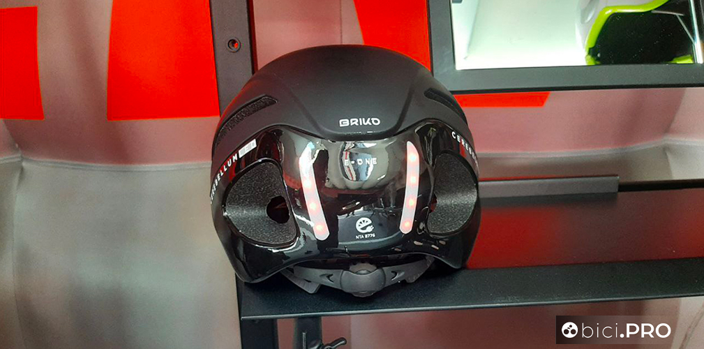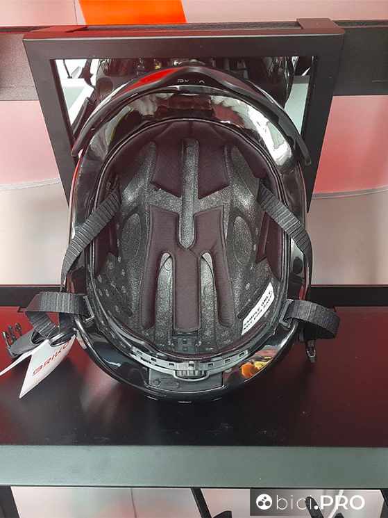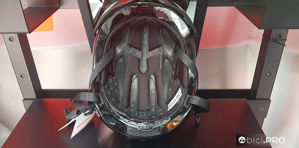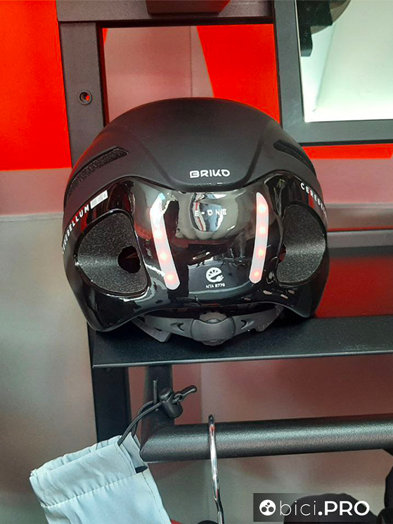«Sono stati inseriti – illustra Arianna Aimar, Developer Caschi – dei led integrati sul retro che si caricano come un cellulare. In più è stata aggiunta una lente con magneti, integrata anche questa, per proteggere da insetti, polvere e oggetti esterni. In più è stato pensato anche per lo sviluppo dei monopattini e tutto quel segmento urban in modo trasversale. Dispone di un sistema di protezione proprietario. Nella parte posteriore troviamo una regolazione micrometrica verticale per trovare il giusto fitting. L’imbottitura ha un trattamento antibatterico. L’estetica scelta è a calotta chiusa per avere un design rivolto all’ambito urban. Acqua e vento non sono un problema e funge anche da protezione per il freddo in inverno. Gode di certificazione NTA per e-bike, infatti la forma posteriore è leggermente più bassa per passare questa certificazione».