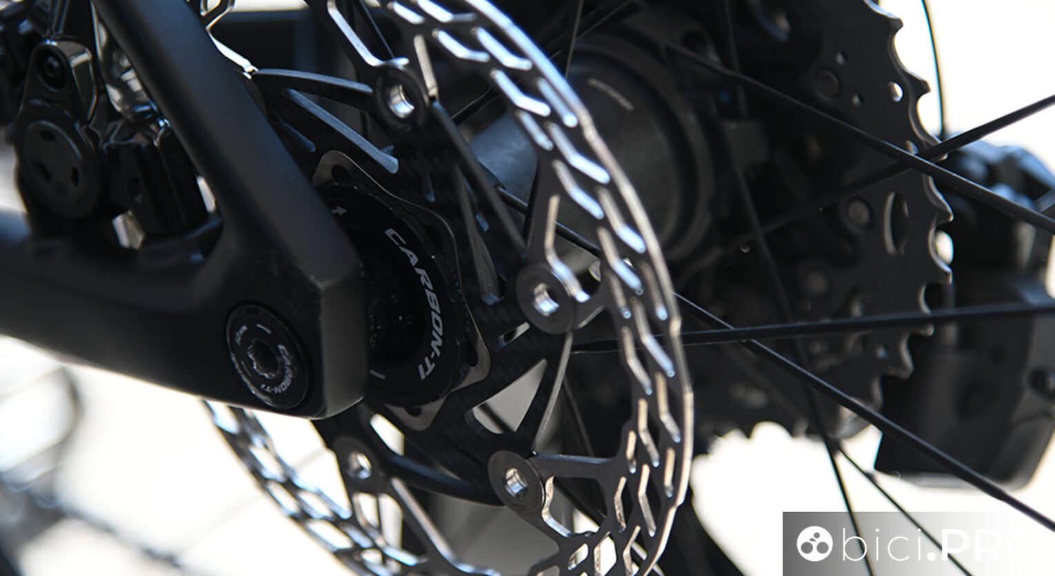 Lo spider, ovvero la struttura portante del disco è in carbonio ed anche in questo caso adotta una lavorazione di precisione. Grazie ad un adattatore specifico, che prevede la piastra di contrasto in titanio, rispecchia le specifiche CenterLock, le più utilizzate per l’ingaggio ai mozzi.