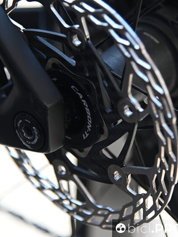 «Lo spider in carbonio, così come tutto il disco nel suo complesso, nasce da un insieme di processi e di lavorazioni che richiedono tempo, pazienza e una precisione maniacale. Lo spider in carbonio – racconta Monticone – nasce con lo standard a sei fori, ma con il cambiamento di una regola imposta da Shimano, gli abbiamo cucito addosso un adattatore specifico che permette il montaggio sui mozzi di natura CenterLock. Lo abbiamo fatto con lo stile che contraddistingue Carbon-Ti, quindi con materiali di prim’ordine e senza lasciare nulla al caso».