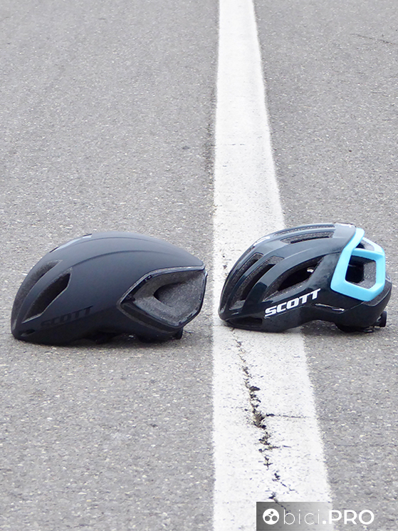 Torniamo a parlare di caschi, mettendo a confronto i due modelli Scott utilizzati anche dai pro’ del Team DSM e ugualmente disponibili sul mercato. Cadence Plus, ovvero quello aerodinamico, indossato non solo dagli uomini veloci, e Centric Plus, da considerare un modello tradizionale.