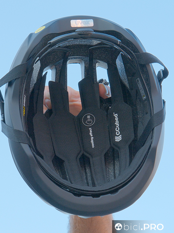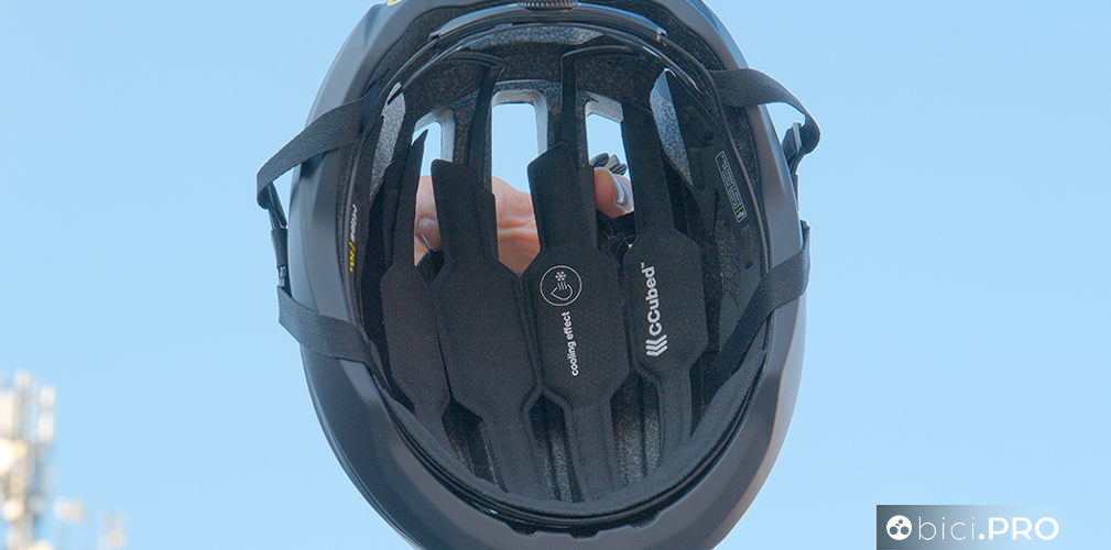 Scocca superiore in fibra composita, mold interno in un blocco unico a densità differenziate. C’è il Mips di matrice Air Node, completamente integrato nelle imbottiture e queste ultime danno forma ad una nuova soluzione progettata da Uvex. Si chiama CCubed ed ha il compito di tenere a livelli molto bassi la temperatura interna al casco. Come funziona?