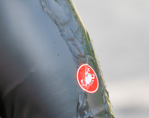 E poi c’è la parte del pantalone vero e proprio, quella delle cosce. Il materiale come dicevamo è sottilissimo. La struttura del materiale e la disposizione del tessuto varia molto. Sui fianchi c’è una maggiore compressione e questo, dicono in Castelli, migliora la stabilità del pantaloncino stesso.
