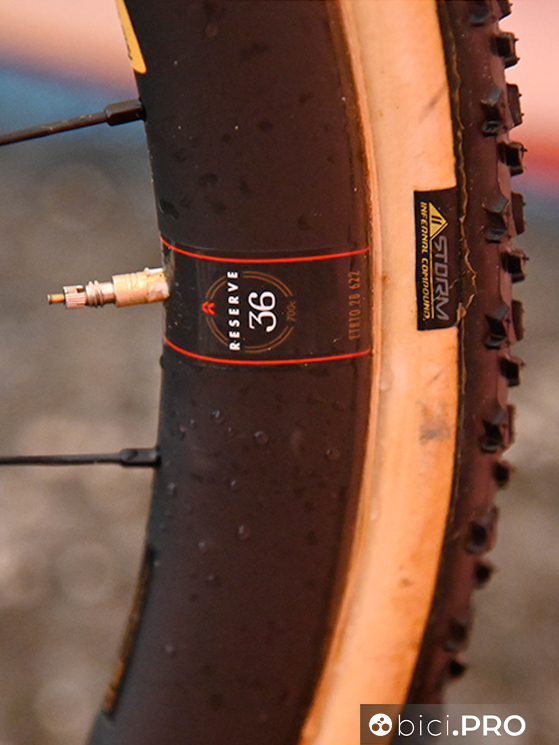 Altro cambio importante, sempre in merito alla dotazione del mezzo, si riferisce alle ruote. Non ci sono più le Shimano e ci sono le Reserve, marchio utilizzato anche nel catalogo Cervélo. Quelle usate da Van Aert sono le 36 da tubolare con cerchio in carbonio, ma i mozzi sono DT Swiss della famiglia 240 Spline. Gli pneumatici sono Dugast.