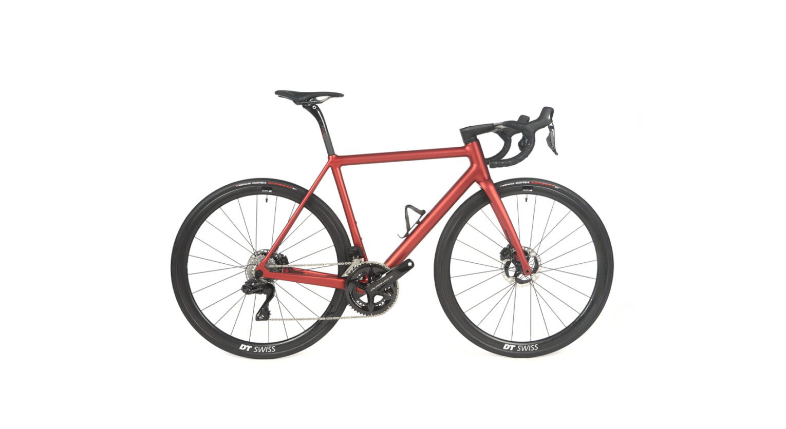 «Il manubrio – dice Calvi – è l’Alanera di Deda, dello stesso brand è anche il reggisella, in questo caso abbiamo optato per il modello Superzero. I gruppi che si possono montare sono Dura Ace Di2 ed Ultegra Di2, per quanto riguarda Shimano. E’ possibile utilizzare anche il gruppo Red AXS di Sram. Anche in questo caso la Opale può essere personalizzata con qualsiasi gruppo. Le ruote – conclude – sono le DT Swiss, modello PRC 1100, set definitivo per spingere ogni amatore oltre qualsiasi ostacolo. Il peso della coppia è di 1266 grammi».