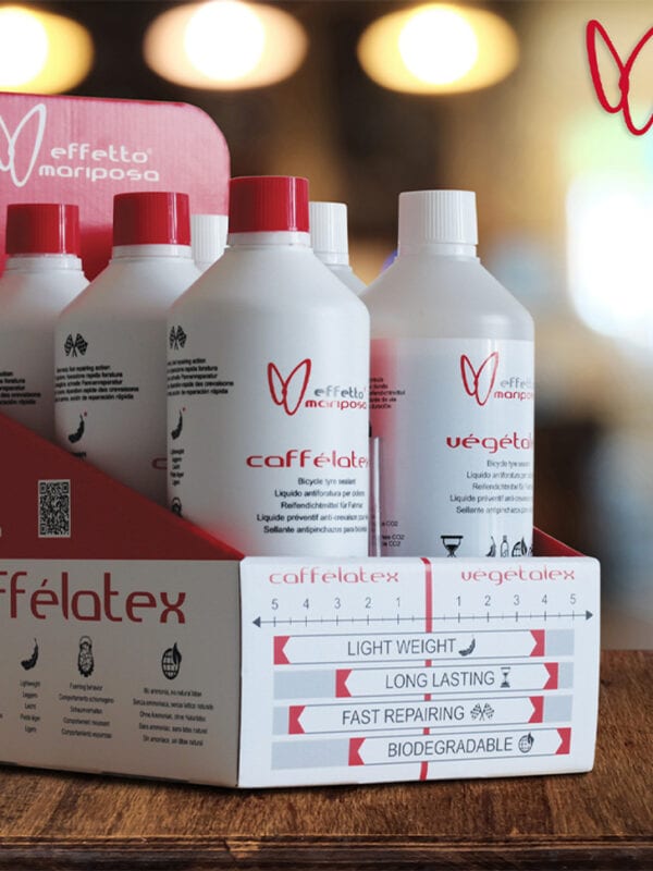 Il brand svizzero Effetto Mariposa, che per la stagione 2021 collabora con il team Wanty-Gobert-Intermarché, propone due tipi di sigillanti diversi: Caffélatex e Végétalex.