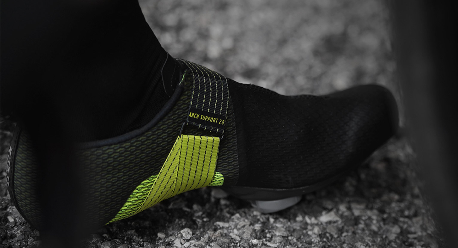 «Abbiamo rimosso una parte della suola per integrare il sistema Dynamic Arch Support 2.0, in modo che questo avvolga l’intero arco plantare partendo dalla base del piede – continua Alex Locatelli – per fare questo abbiamo realizzato una tomaia flessibile, che si può regolare grazie al Boa Li2 superiore».
