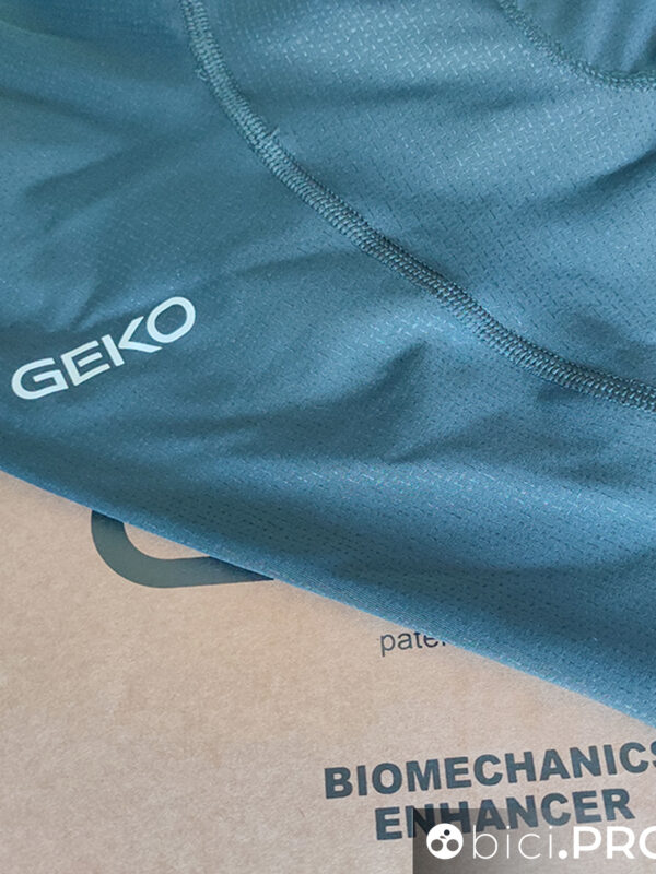 «L’obiettivo di Geko – ci racconta Francesco Nardi – è quello di offrire un aiuto nel mantenimento della posizione ottimale quando si è sulla bicicletta. Non è solo una questione di ricercare la miglior prestazione, perché prima di tutto in sella bisogna stare bene, essere a proprio agio ed in comfort. Da qui si capisce quanto conti la potenzialità di una posizione biomeccanica corretta, che di norma è quella identificata da un biomeccanico in fase di valutazione. Ma non è solo questo: una maggiore stabilità e grip aiutano nell’esperienza migliore e di qualità proprio quando pedaliamo. Una salopette del genere con l’inserto che aumenta il grip tra il pantaloncino e la sella, stabilizzando e creando un buon feeling, contribuisce ad una migliore guida in discesa e quando è necessario spostare anche il peso del corpo.