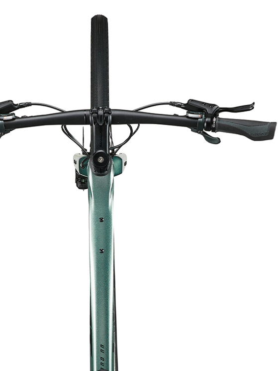 C’è il manubrio dritto, un vantaggio non da poco se immaginiamo questa bicicletta in un contesto cittadino o dell’interland metropolitano, oppure nei sentieri di collegamento che portano verso i centri abitati. Inoltre, proprio il flat-bar rende ampiamente sfruttabile questa tipologia di prodotto, anche per chi utilizza il mezzo a pedali per i soli spostamenti lavorativi.