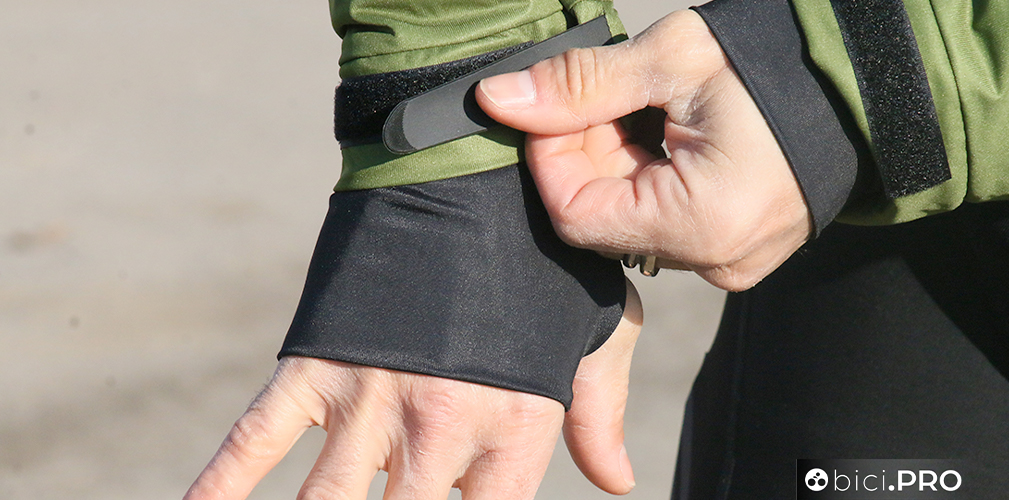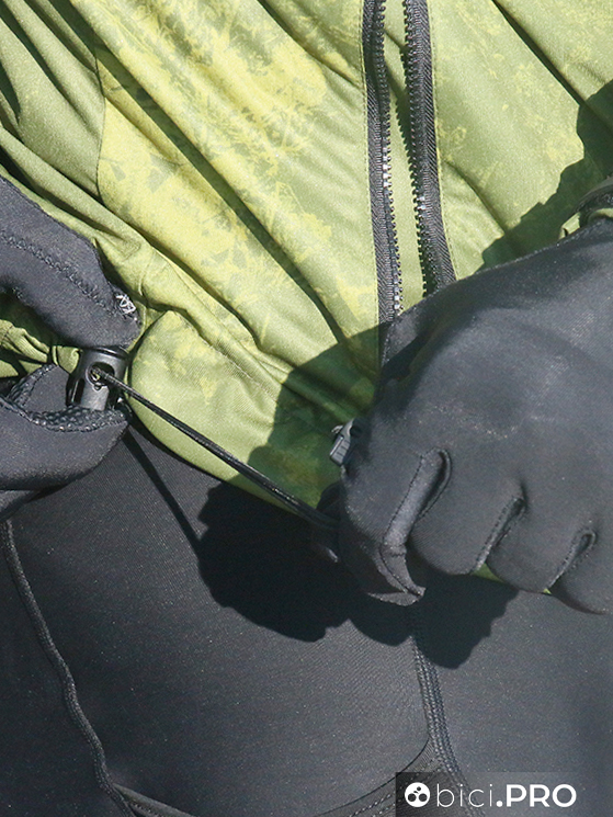 L’elastico in vita, utile e comodo Il doppio polsino e il velcro per regolare il fitting Patella interna alla cerniera, per riparare dall’aria e tasca laterale superiore Anche la maglia felpata è curata, con una ribattitura impermeabile sul fondo schiena