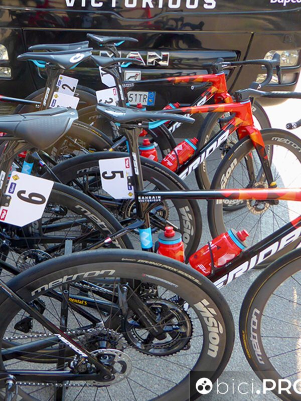 Il gruppo degli scalatori del Team Bahrain-Victorious ha in dotazione la Merida Scultura Team. Cambiano le scelte dell’allestimento e gli atleti hanno a disposizione un pool di componenti molto vario. Tubeless e tubolari, in base al percorso e alle preferenze soggettive, oltre ad un cockpit integrato tra Vision e Merida.