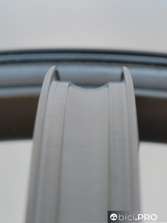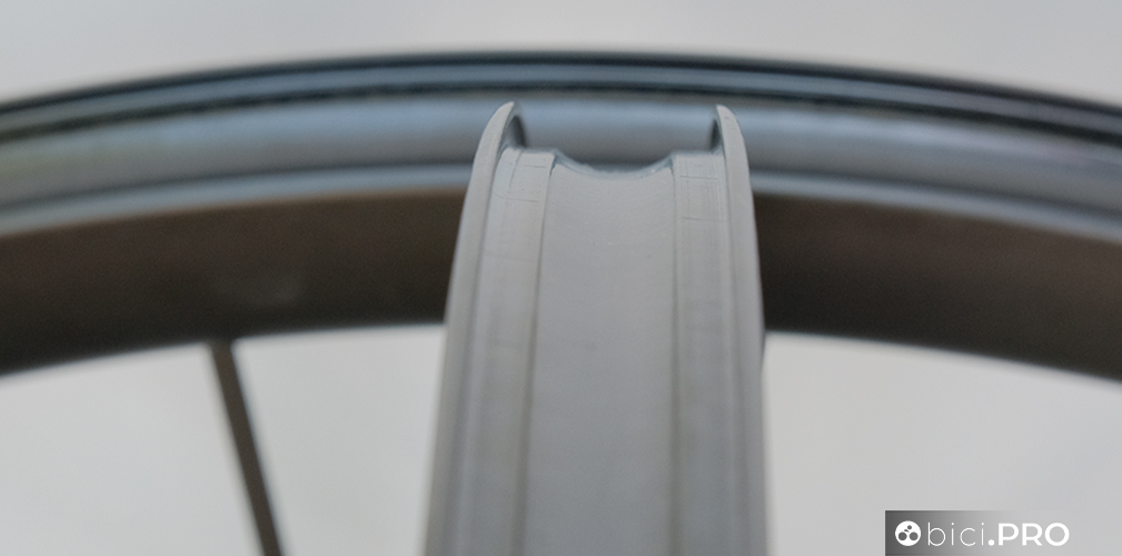 E’ un esempio la tecnologia Alpha Rib, che in parte sfrutta le conoscenze ed il DNA del passato, una soluzione che apre nuove frontiere alla categoria e mai utilizzata in passato. I raggi in carbonio si innestano direttamente nel cerchio, non ci sono nipples ed elementi metallici e non si fermano al pari della parete superiore del cerchio, ma proseguono verso il basso. Ognuno dei 24 raggi è collegato (appoggiato) ad una sorta di paratia interna al cerchio, una membrana che sostiene, irrobustisce, bilancia e rende il prodotto unico.