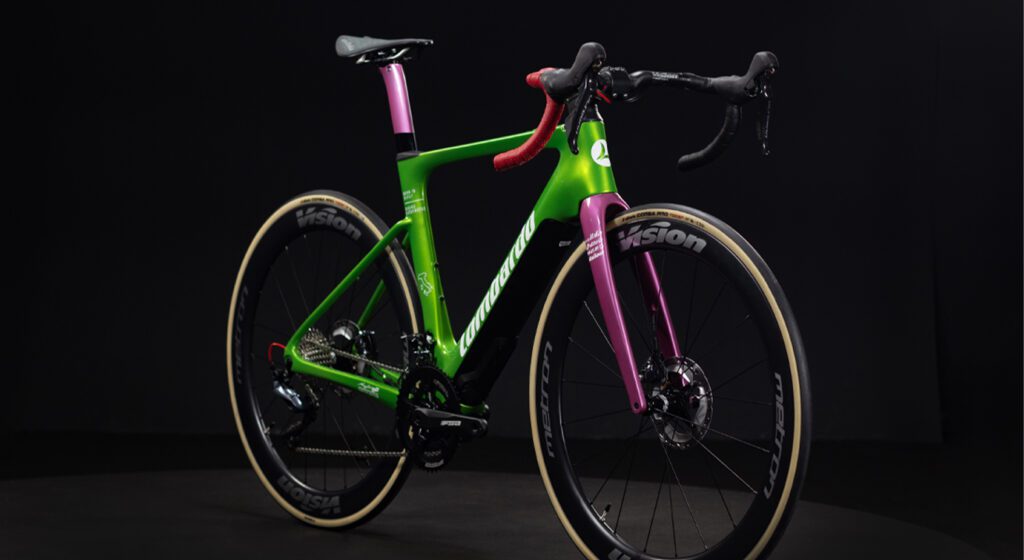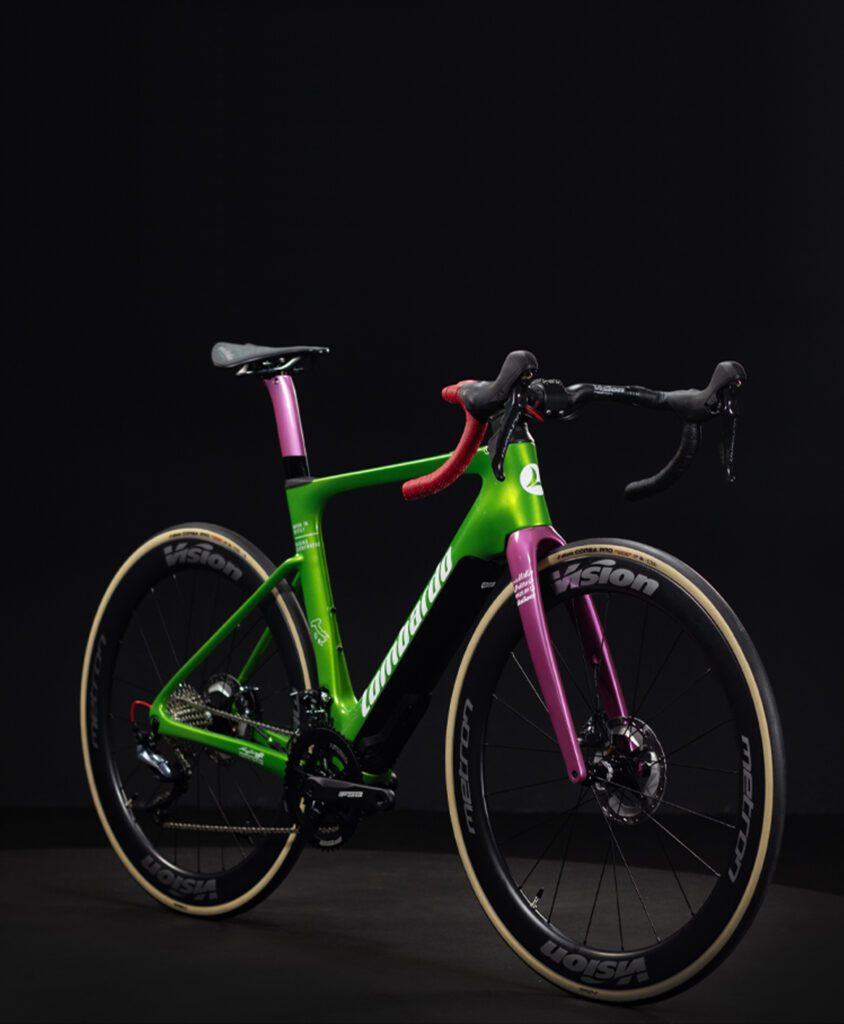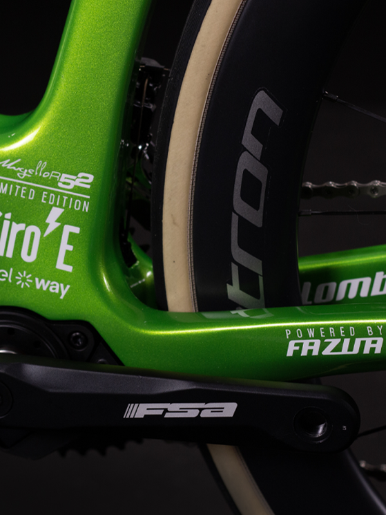 Il modello di e-bike a disposizione dei portacolori del team RCS Sport è la Mugello R52. Il telaio, monoscocca eROAD 28″ in carbonio, è leggero e reattivo riducendo nettamente il peso. Per quanto riguarda lo sterzo è direttamente integrato nel telaio, mentre la forcella è anch’essa in carbonio.
