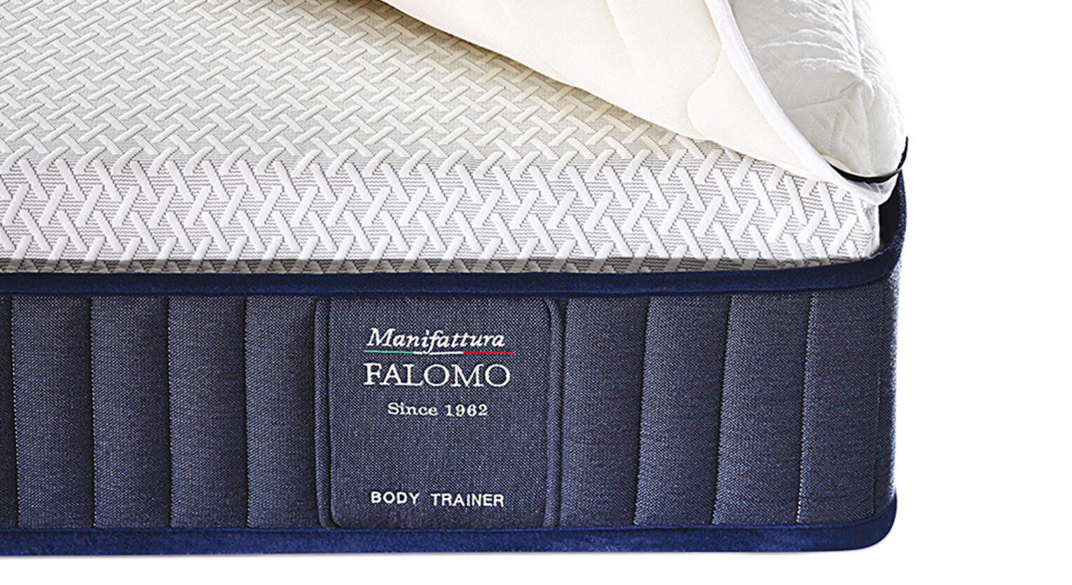 Body Trainer di Manifattura Falomo è un materasso pensato e sviluppato in modo specifico per agevolare il recupero fisico durante le ore di riposo, grazie principalmente all’innovativa struttura interna realizzata a rulli contrapposti in grado di alleviare ogni tipo di compressione. È un materasso con un’altezza importante di 30 centimetri, un fattore da non sottovalutare anche nell’ottica di agevolare le operazioni di rifacimento del letto.