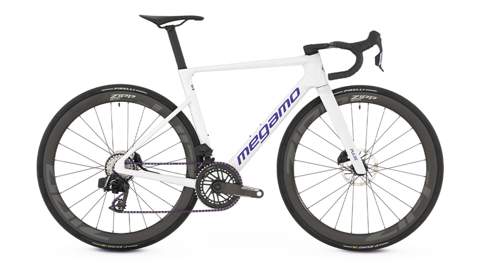 Inoltre la Pulse Sram Force–Hammerhead viene venduta con due borracce, una bianca e una viola, che quindi si sposano perfettamente con l’estetica della bicicletta. Il prezzo di questa nuovissima Megamo in versione limitata è di 7.999 euro.