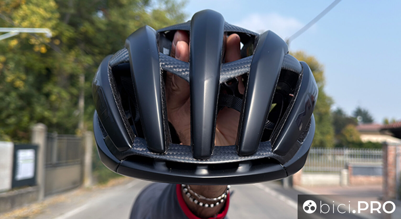 Rispetto alla versione precedente adotta gli inserti in carbonio come un vero e proprio telaio portante. Prende il nome di 3K Airframe, non è un semplice vezzo estetico ed ha permesso di ottimizzare la distribuzione del mold EPS interno. L’obiettivo principale non era alleggerire il casco in termini di peso, ma renderlo più sicuro ed equilibrato, migliore distribuzione dell’EPS che ha influito anche su una migliore (aumentata) ventilazione, pur pagando qualche grammo in più.