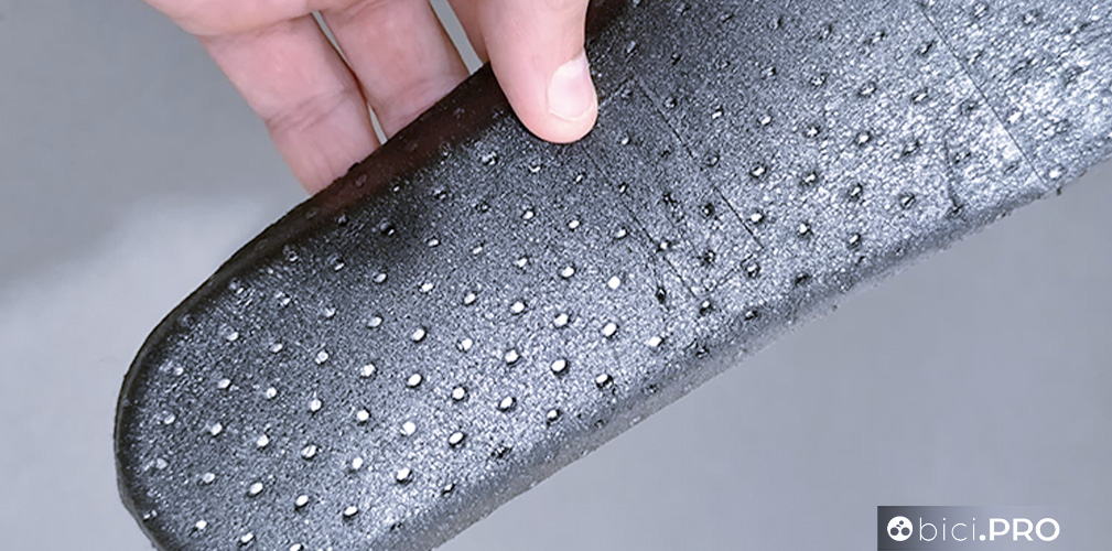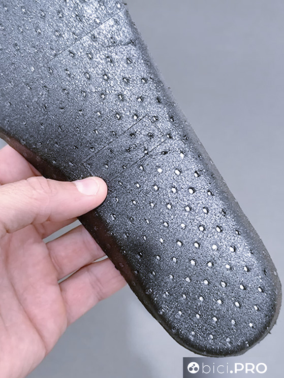 Merita una menzione anche la soletta, realizzata da Northwave con una struttura multistrato Eva + Alluminio + Eva + Pile. Al suo interno è presente un foglio di alluminio che garantisce l’isolamento termico, un dettaglio tipico della cura costruttiva del marchio veneto.