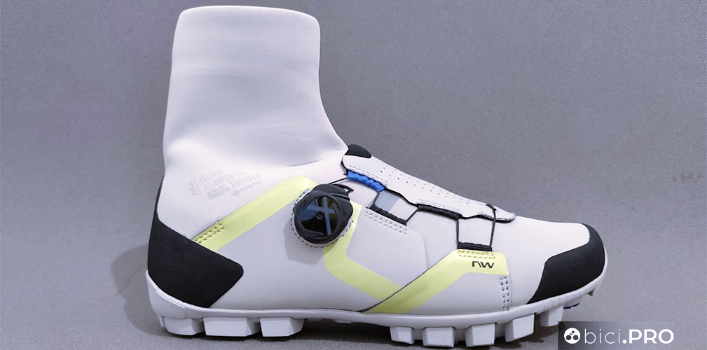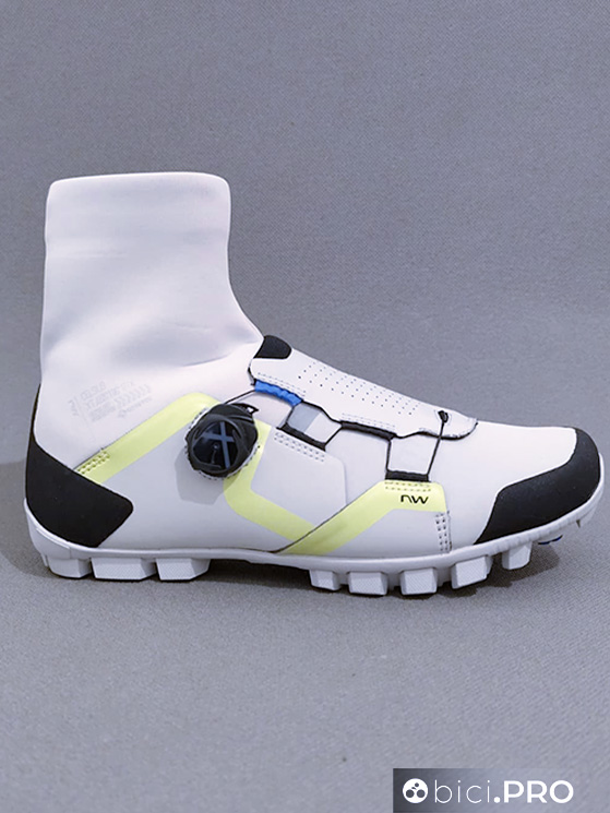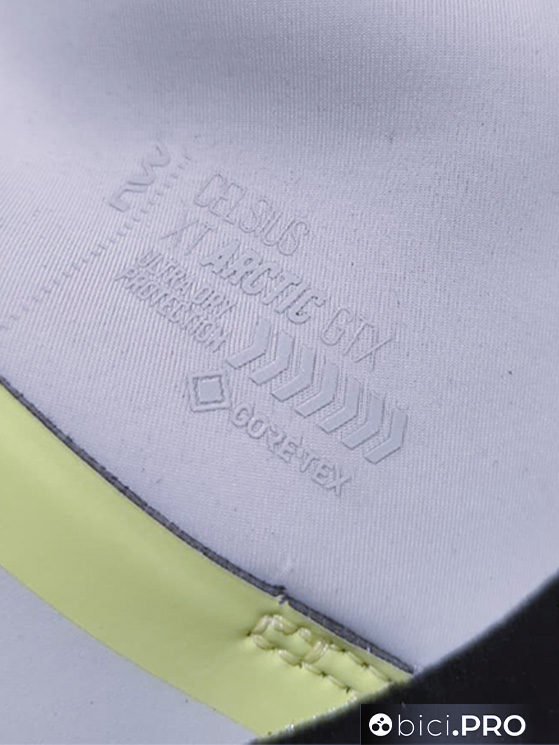 Il primo obiettivo della nuova Celsius è proteggere dal freddo, ma anche da acqua, fango e neve. E ci riesce grazie all’interno in Gore-Tex. Fu proprio l’introduzione di questo materiale a rendere Northwave un marchio pioniere nel settore: il brand trevigiano fu infatti tra i primi a utilizzare il Gore-Tex in una scarpa sportiva da ciclismo.