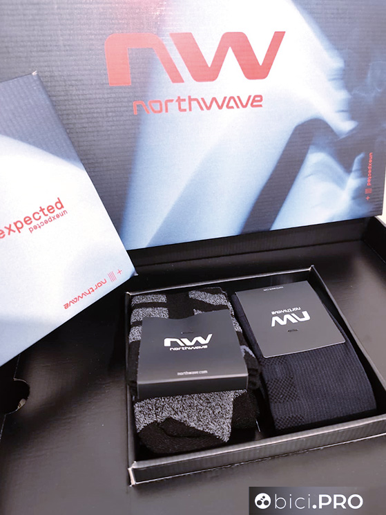 La confezione “media kit” , chiamiamola così (al pubblico è la classica confezione con le scarpe) delle Northwave Celsius XT Arctic GTX è super rifinita e contiene due paia di calzini. Uno è l’Husky Ceramic, più spesso e caldo, ideale per le giornate di freddo estremo; l’altro è l’Extreme Pro, più sottile e perfetto per uscite asciutte ma fredde o soleggiate. Due set che proveremo quanto prima.