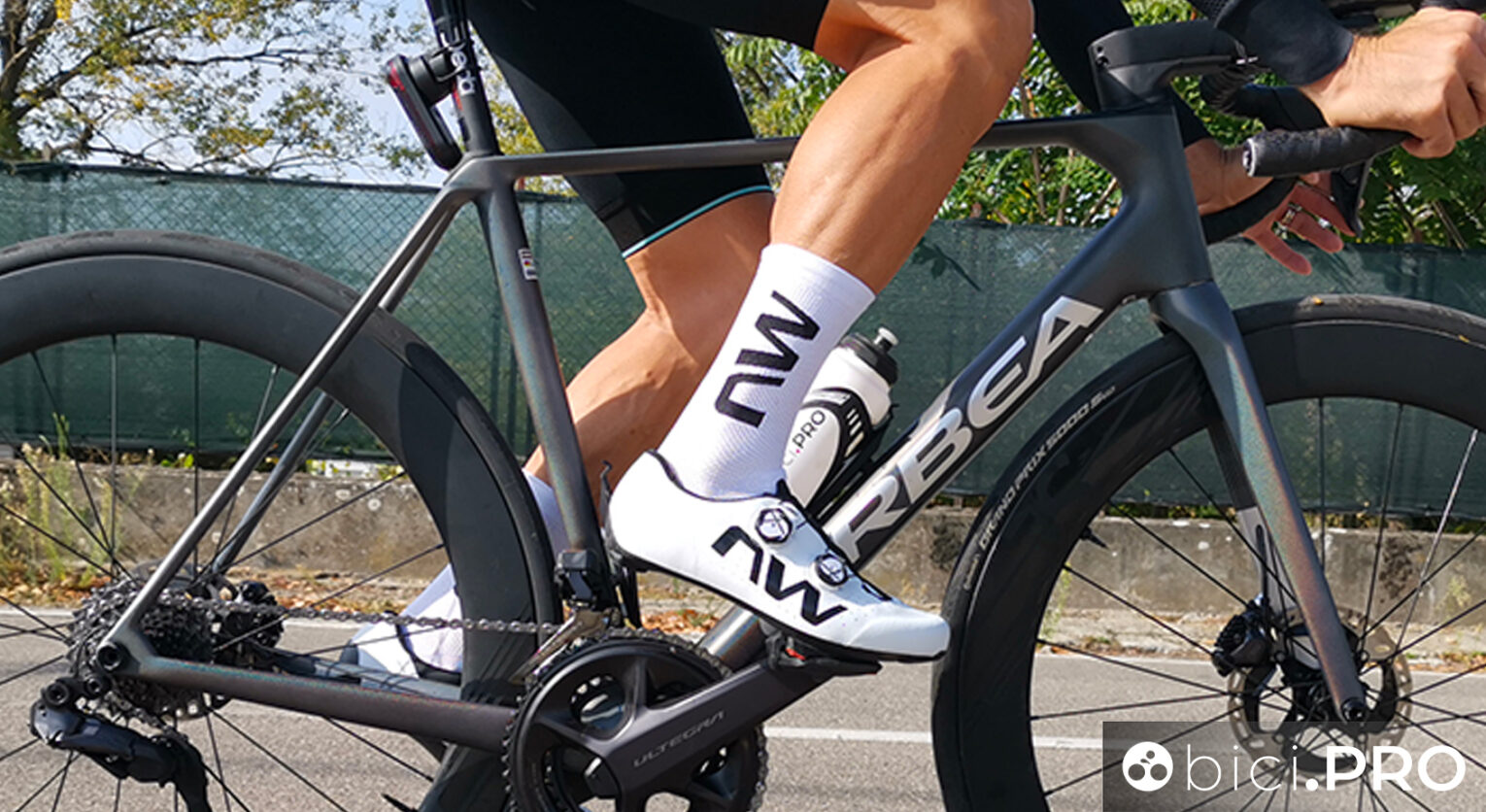 Il primo impatto estetico trasmette un senso di comfort, ma anche di sostanza: una scarpa piena e robusta. La sezione posteriore è asciutta e avvolgente, di più rispetto alla Extreme Pro 3, mentre la parte davanti si allarga abbondantemente (Northwave fornisce due solette con spessori diversi, 3 e 5 millimetri, soluzione che permette di regolare il volume interno).