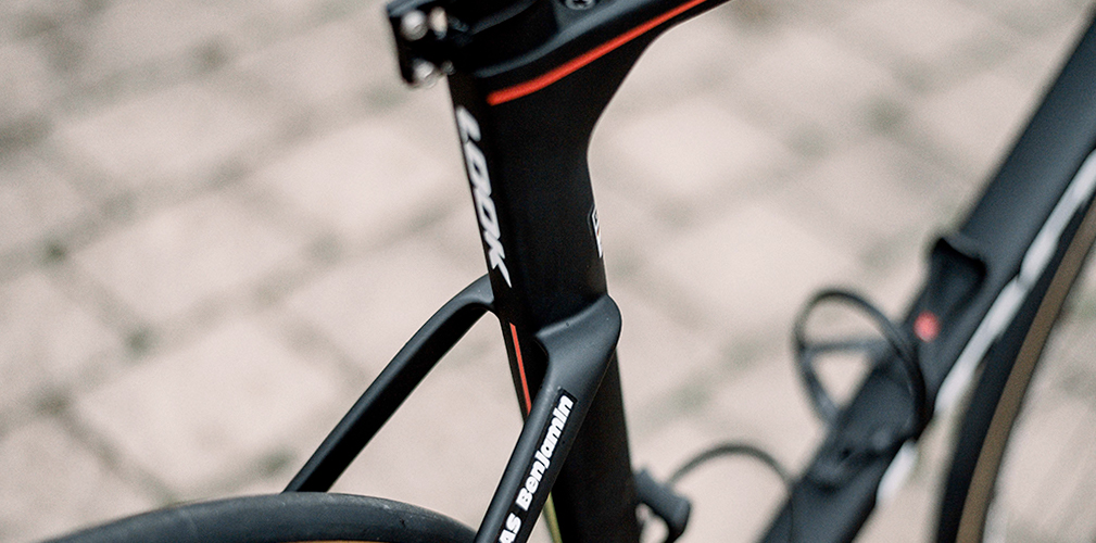 L’inserzione degli obliqui è ribassata, una novità per Look, che in questo senso si adegua agli standard di design del mercato. Nel punto di unione i due profilati obliqui sono molto sottili, con un’aerodinamica pronunciata. Il design è parecchio interessante.