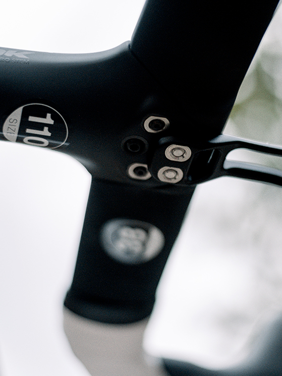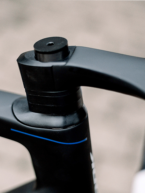 E’ Look e sembra una sorta di semi-integrato. Il manubrio vero e proprio, di cui avevamo già parlato a proposito del fitting di Cimolai, ha una sezione alare e si innesta nell’attacco, anche questo completamente in carbonio e con il passaggio interno delle guaine.