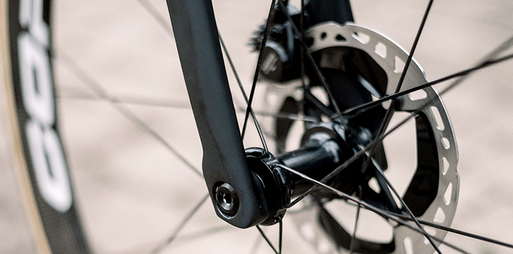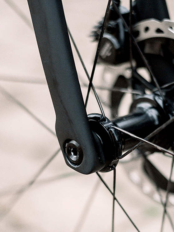 L’avantreno è caratterizzato da una forcella abbastanza sfinata, con delle piccole “pinnette” vicino alle sedi del perno passante. La testa invece ha un vistoso becco che si abbina alla sede obliqua, ma non entra completamente al suo interno. Rigida di certo, ma non estrema, veloce e guidabile, la potremmo descrivere così. La parte alta dello sterzo ha una svasatura che contiene la serie sterzo, aiuta a rendere omogeneo l’impatto estetico, anche se si utilizzano diversi spessori e aiuta ad abbassare lo stack. Gli spacers sono specifici e con una forma a goccia.