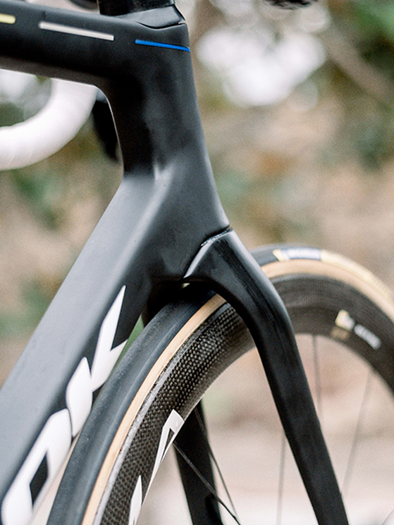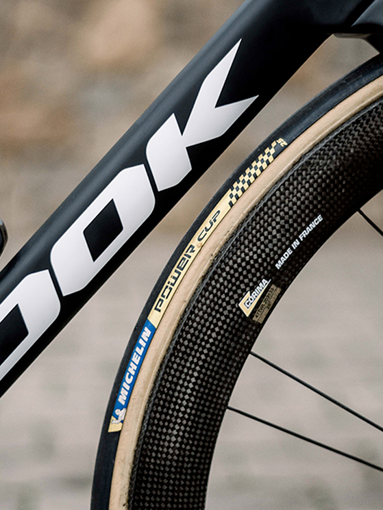 Ci sono le ruote Corima e questo componente rimanda all’utilizzo dei tubolari, che sono Michelin. Corima non ha ancora sviluppato (per lo meno non lo ha ufficializzato) un pacchetto ruote road tubeless.