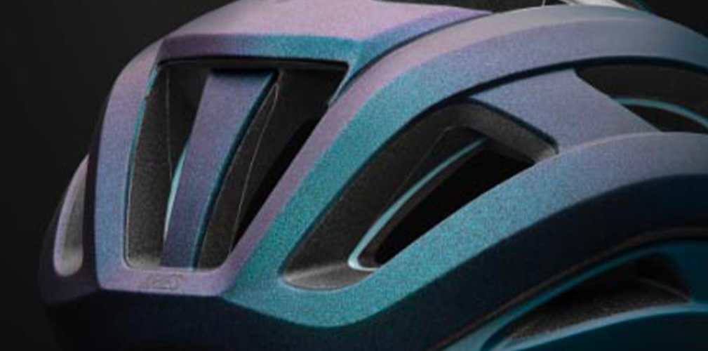 Si scrive di un casco che ferma l’ago della bilancia a 265 grammi (dichiarati) nella taglia media. Il mold a doppia densità è composto da una schiuma di nuova concezione in nanocelle. Lo shape arrotondato è il naturale alloggio dei 24 fori di aerazione ed espulsione dell’aria calda, asole la cui forma è studiata nel wind tunnel.