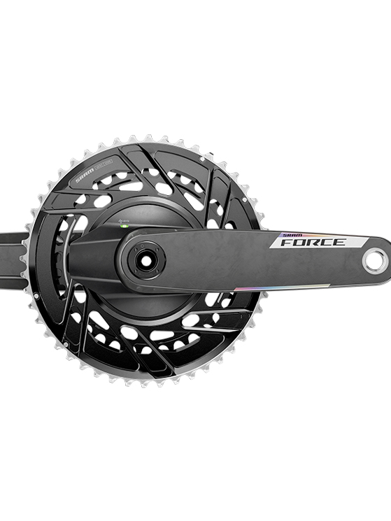 Le corone ci sono anche con il misuratore Quarq incorporato che, per questa ultima versione del Force è stato previsto anche nella versione upgrade da inserire nell’asola del perno passante (calcolo della parte sinistra). Pensando alla monocorona anteriore è disponibile “piena”, o per meglio dire la Force 1 Aero ring, con o senza power meter Quarq, con dentature “ufficiali” comprese tra i 44 e 50 denti.