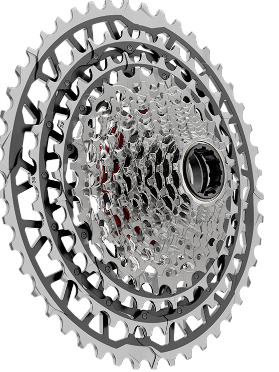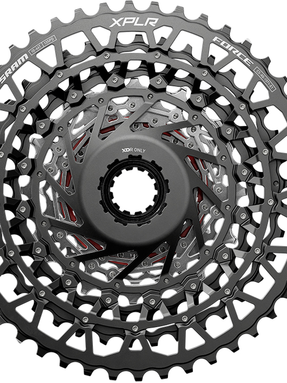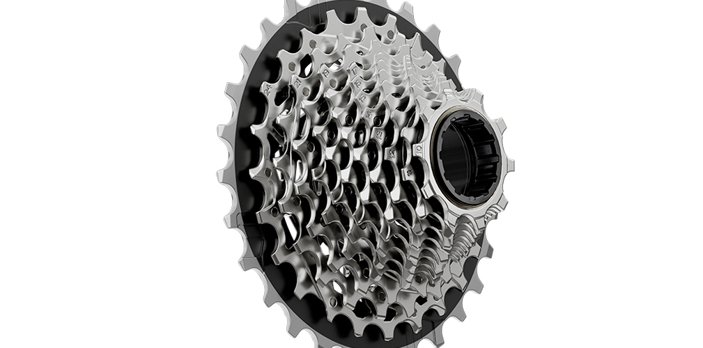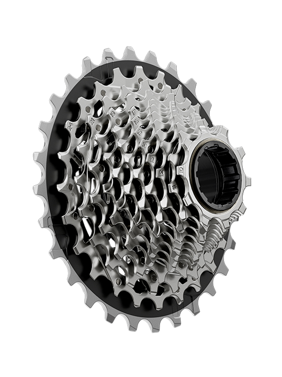 Sono un blocco unico full pin (proprio come quelli del Red) in acciaio con finitura nichel e adottano l’ingaggio XDR del corpetto. 10-28 e 10-30, 10-33 e 10-36 le scale disponibili con i 12 pignoni. Per quanto riguarda la versione XPLR a 13 rapporti, prevede la scala pignoni 10-46 e richiede il bilanciere Force XPLR specifico. E’ necessario sottolineare il fatto che la trasmissione con le 13 velocità funziona sempre con la catena Flattop usata per le 12 velocità ed i medesimi shifter.