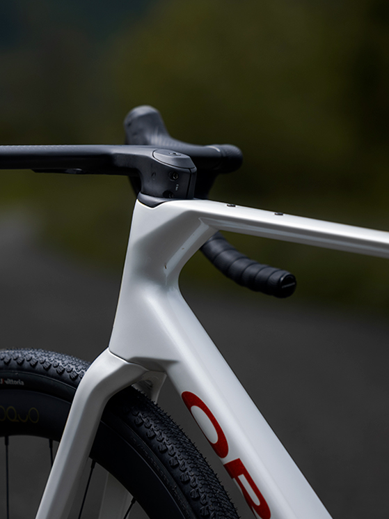I punti di montaggio per eventuali borse sono quattro: l’orizzontale con una piccola borsa e la forcella come scritto in precedenza, sotto l’obliquo per l’eventuale terza borraccia e sotto la sella. E’ possibile montare i due parafanghi, anteriore e posteriore. Per chi volesse azzardare qualcosa in più in termini di ricerca della prestazione, è possibile montare un manubrio integrato full carbon (Orbea ha sviluppato un nuovo componente OC), considerando il disegno ACR-FSA della serie sterzo che allarga in modo esponenziale la compatibilità. Oltre alle livree da catalogo, Orbea Terra Carbon rientra nel programma di personalizzazione MyO.