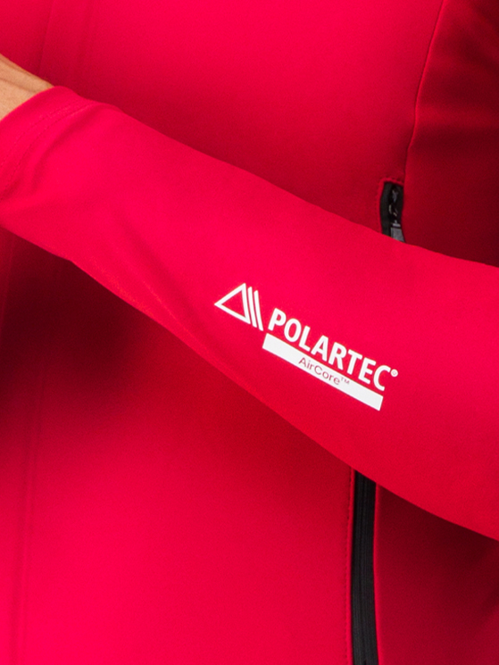 Ripetutamente testato, sia dagli atleti che in laboratorio, il tessuto Polartec AirCore unisce i vantaggi delle proprietà antivento e idrorepellenti. E’ stato progettato per lasciar passare una quantità minima e impercettibile di aria che assorbe l’umidità del sudore e la trasporta all’esterno dell’indumento, offrendo un livello di asciutto inimmaginabile per una giacca a membrana.