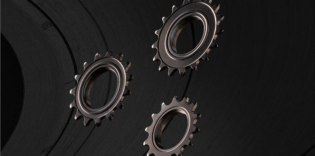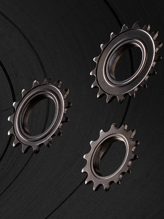 Gli ingranaggi sono ottenuti dalla lavorazione a CNC della lega Ergal 7075-T6, che vengono poi trattati con finitura sandblasted, così da aumentare la rigidità del materiale. Si tratta di una lavorazione fondamentale perché, gli atleti, nei brevi ed intensi sforzi su pista, imprimono una grande forza sulle parti meccaniche. Con questo trattamento ogni singolo watt viene trasmesso a terra.