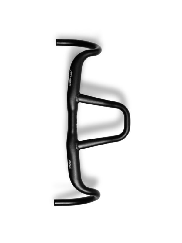 Il manubrio Pro-Wing AGX di FSA ha uno stile unico che ha tante sfumature e possibilità di utilizzo. Nella parte dell’impugnatura bassa l’angolazione è di 25 gradi, ciò consente di avere una presa più sicura e salda in discesa. Non solo, questo tipo di angolazione porta ad avere un’ampiezza nella parte bassa di 50 millimetri, l’impugnatura risulterà salda anche sui terreni sconnessi e accidentati. L’estensione anteriore, invece, ha una lunghezza di 170 millimetri. La larghezza alla base è di 150 millimetri, mentre in cima è di 80 millimetri. La lunghezza permette al ciclista di distendersi, trovando di fatto una posizione aerodinamica ma comunque comoda che gli permetta di appoggiare gli avambracci.