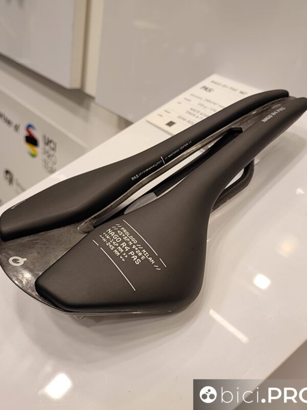 La Prologo Nago R4 è lunga 245 millimetri e sarà disponibile in due larghezze: 137 e 147 millimetri. Ognuna delle due larghezze sarà caratterizzata da uno spessore dedicato dell’imbottitura, più sottile quella della 137, maggiore quello della 147. Presumibilmente le versioni saranno due, come vuole la tradizione Prologo, Nack in carbonio, Ti-rox con i due telai in lega metallica. Questi ultimi, a prescindere dal materiale di costruzione, sono ampiamente sfruttabili per l’avanzamento e l’arretramento, soluzione mutuata dalla Scratch M5.