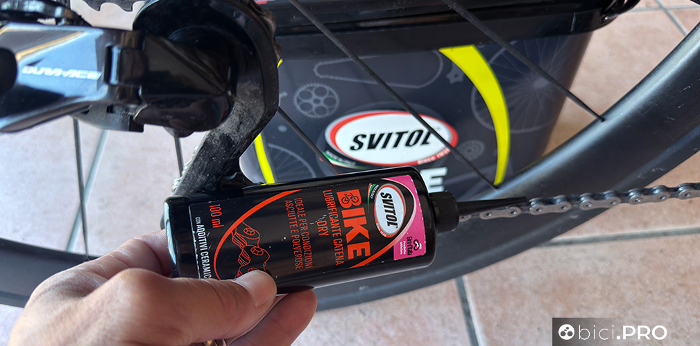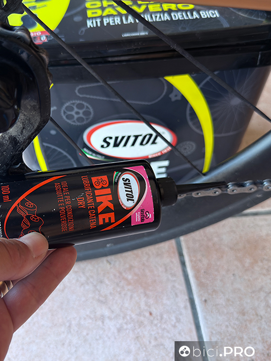 E’ nostra abitudine usare la formula Svitol Detergente spray prima della detersione vera e propria. E’ una malizia che utilizziamo solo nel momento in cui la bicicletta è particolarmente sporca, ma in realtà potrebbe essere sufficiente usare il Detergente Concentrato diluito in acqua. Quando la bici non è troppo sporca e non presenta residui importanti di una vecchia lubrificazione, le spazzole comprese nel kit, bagnate con il Detergente possono anche essere sufficienti per pulire per bene il mezzo meccanico nei vari punti, anche quelli nascosti. Resta fondamentale il risciacquo, soprattutto nell’ottica di una corretta asciugatura ed applicazione successiva del Polish. Un’ulteriore dritta: un detergente di alta qualità, si vede quando basta una semplice azione con la spugna, senza schiacciare e senza grattare. Significa preservare la verniciatura e le diverse finiture.