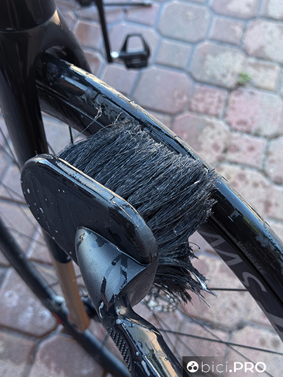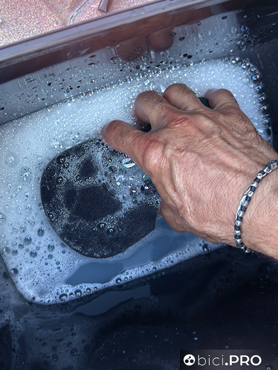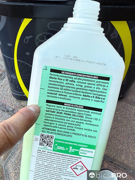 Pulire la bici nel modo giusto è prima di tutto un segno di rispetto per il mezzo meccanico e influisce sulla sua sfruttabilità, efficienza e longevità. Un detergente “giusto” non deve essere troppo aggressivo, deve rispettare tutti quei componenti rotanti che includono i cuscinetti, deve essere in grado di rimuovere lo sporco, ma non il grasso/lubrificante nascosto (ci viene in mente il movimento centrale, solo per fare un esempio, ma anche la serie sterzo). La schiuma nella quantità adeguata e facile da “tirare” quando è spugnata sul telaio, facile da rimuovere con semplice acqua. Non deve danneggiare l’ambiente.