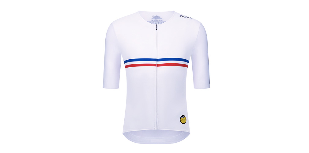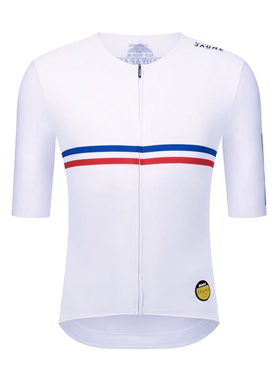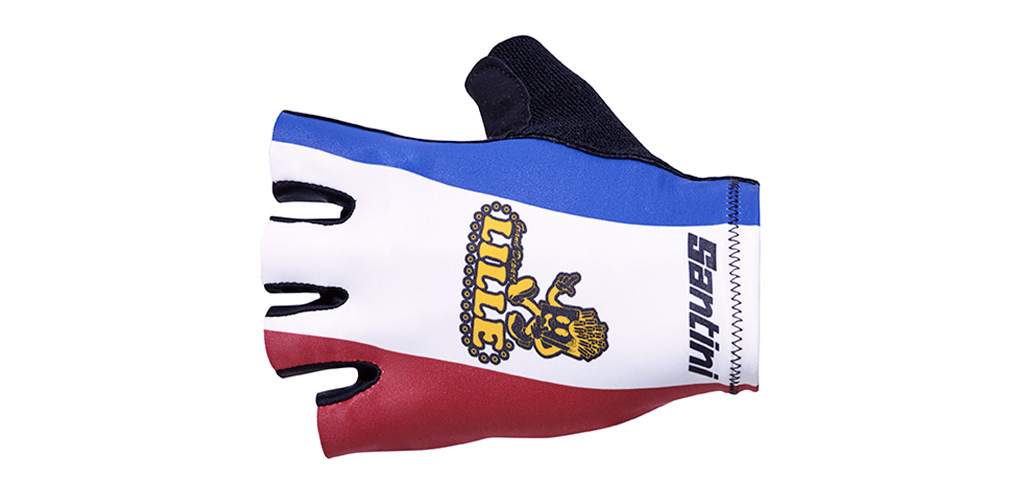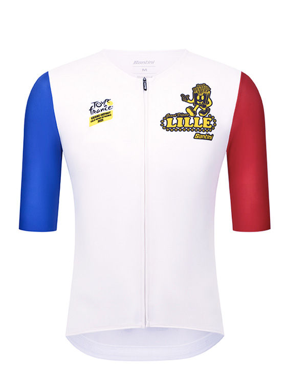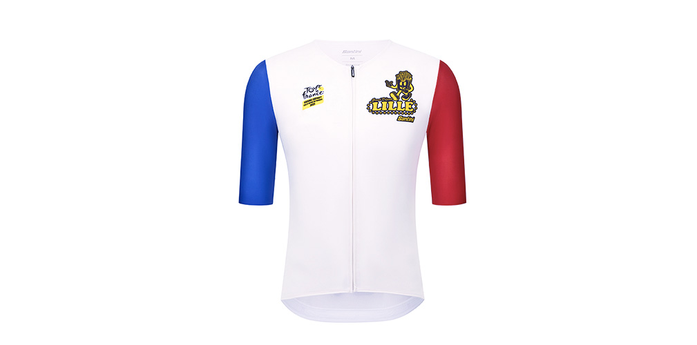 Per la prossima Grande Partenza, che avverrà da Lille, Santini omaggia la città con una collezione ispirata ai colori della bandiera francese: blu, bianco e rosso.