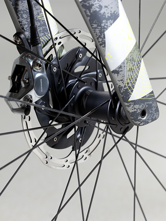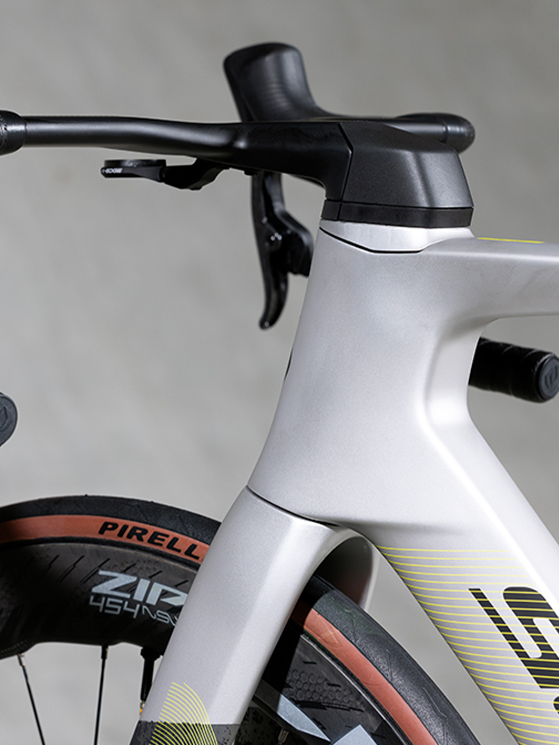 Tutti i modelli Foil RC sono dotati di foderi obliqui ribassati che offrono maggiore comfort ma, ancora più importante per una bicicletta aerodinamica, garantiscono una minore resistenza all’aria. Sono rivolti verso l’interno con un angolo di 10 gradi, forzando l’aria che passa nei raggi in movimento. Grazie ai foderi obliqui ribassati Scott è stata in grado di nascondere le pinze dei freni a disco, non solo riducendo ulteriormente la resistenza aerodinamica, ma anche aggiungendo un’estetica complessivamente pulita.