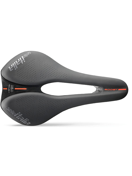 La Novus Boost Evo va a completare la gamma di selle corte di Selle Italia e copre quella fascia di ciclisti che amano stare fermi sulla sella. Viene proposta nella sola misura L3 con una larghezza di 145 millimetri e una lunghezza di 245 millimetri per un peso di 165 grammi. La scelta di fornirla solo in misura L3 è stata fatta perché, unitamente alla forma a onda, fornisce un maggiore sostegno alle ossa ischiatiche.