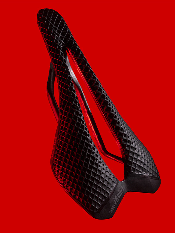C’è poi la versione SLR 3D ELITE, con telaio tubolare in acciaio leggero e 28 grammi meno della SLR Boost 3D TI316. La cover è sviluppata con tecnologia Carbon DLS (prezzo di 359,90 euro). Infine la SLR CARBON, che ha il telaio in carbonio, con imbottitura rivestita a mano che ne fa una sella artigianale. E’ disponibile in quattro taglie (con e senza foro), pesa appena 118 grammi in taglia S3, quattro in meno del precedente modello (prezzo di 319,90 euro).