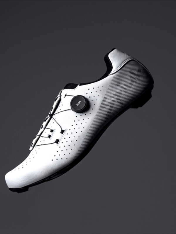 Ritornando alla suola, questa è disponibile in due versioni: fibra di vetro e nylon oppure in carbonio, al fine di aumentare ulteriormente la leggerezza e la performance del ciclista. La tomaia è dotata di micro fori che favoriscono il passaggio dell’aria e la ventilazione. Il piede rimarrà sempre fresco all’interno grazie ai flussi d’aria creati che aiutano a espellere il calore in eccesso.