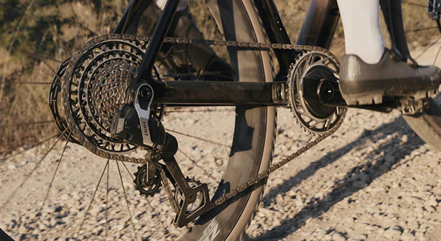 La catena fa parte della famiglia Flattop. Il discorso cambia per il bilanciere posteriore che è ottimizzato per lavorare con la cassetta Red XPLR con i 13 pignoni.