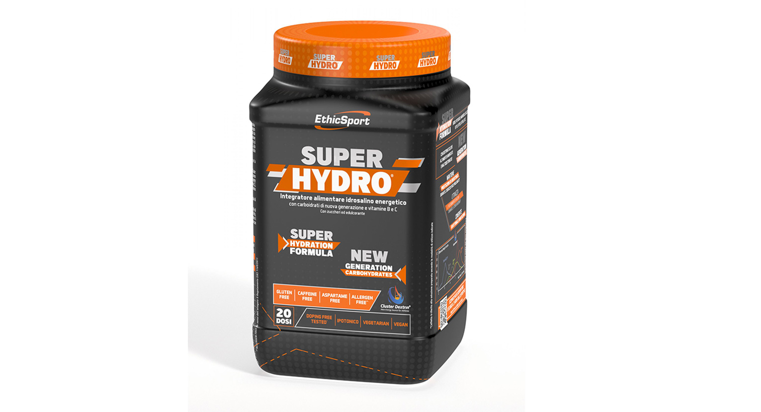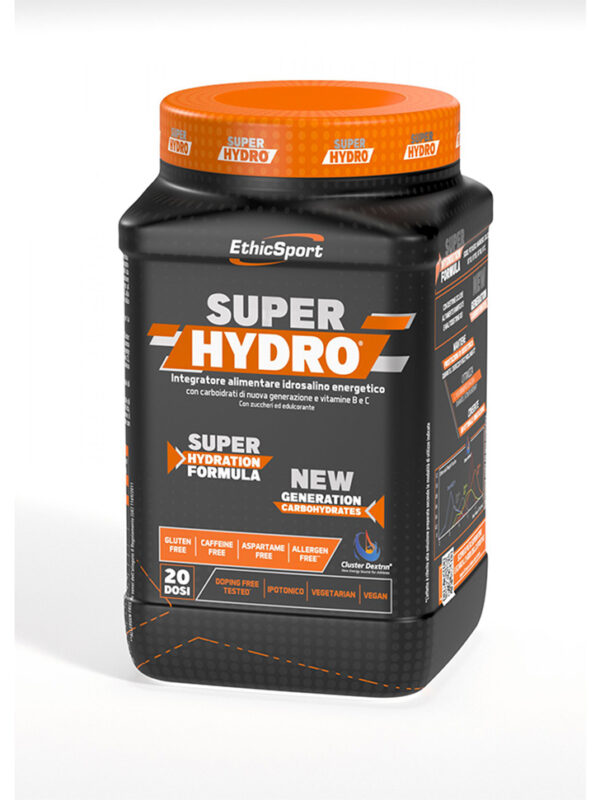 SuperHydro è una soluzione alimentare idrosalina, che dà vita a una miscela ipotonica grazie al bilanciamento ottimale degli elettroliti. Nella sua composizione sono presenti anche le destrine cicliche altamente ramificate insieme alle maltodestrine DE1, ovvero carboidrati di ultima generazione che aiutano l’acqua ad essere assorbita in maniera corretta ed efficace.