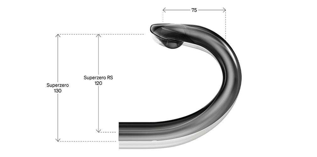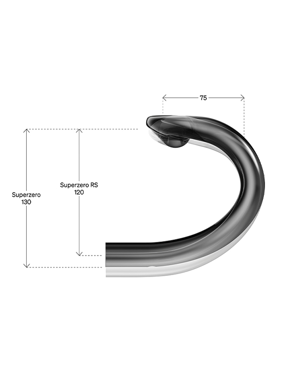Superzero RS è stato progettato per ridurre al minimo la resistenza all’aria e fornire un’impugnatura più ergonomica e confortevole. Il manubrio è caratterizzato dalla nuova forma RHM-EVO, l’evoluzione della geometria attuale con drop più compatto a 120 mm e il comfort superiore nella presa bassa.